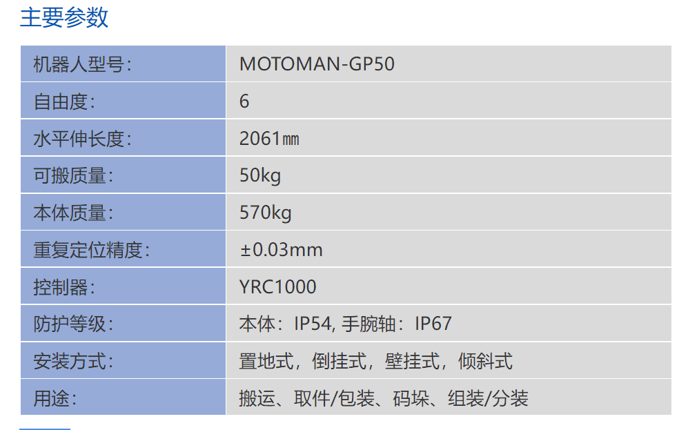 MOTOMAN-GP50安川YASKAWA机器人